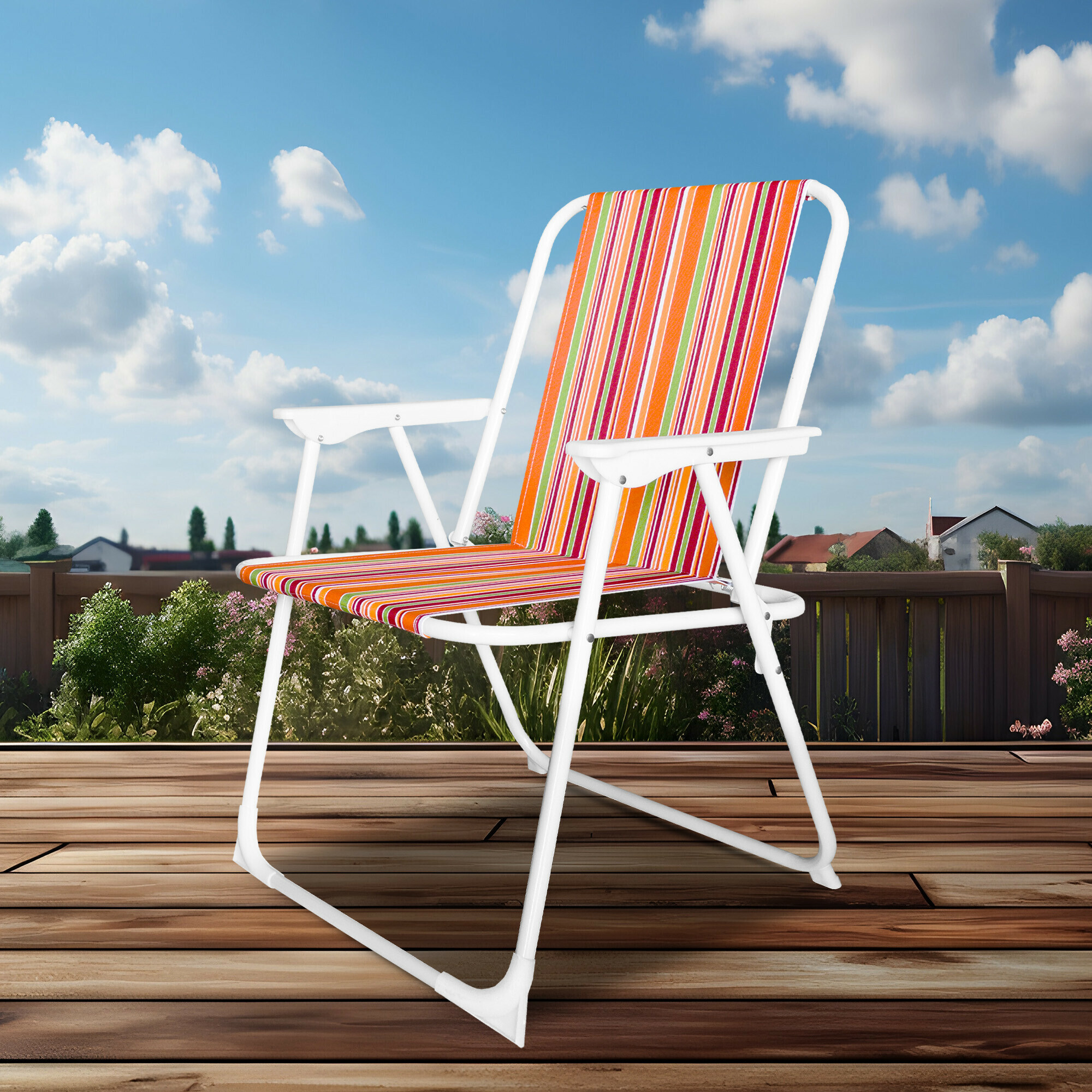 Sklopiva vrtna stolica s udobnim naslonima za ruke, idealna za kampiranje, ali sigurno će pronaći svoju primjenu i kod ribolovaca, modelara, vikendaša i vlasnika vikendica.