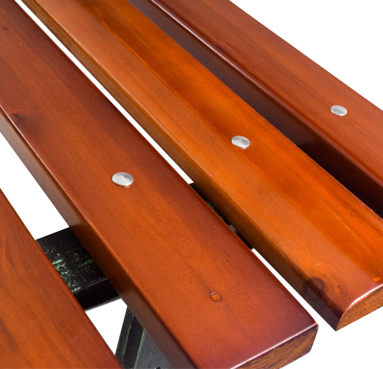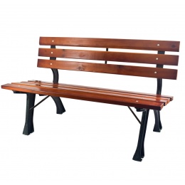 Čvrsta konstrukcija od lijevanog željeza, koja je dopunjena drvenim letvicama. Nosivost klupe 240 kg.
