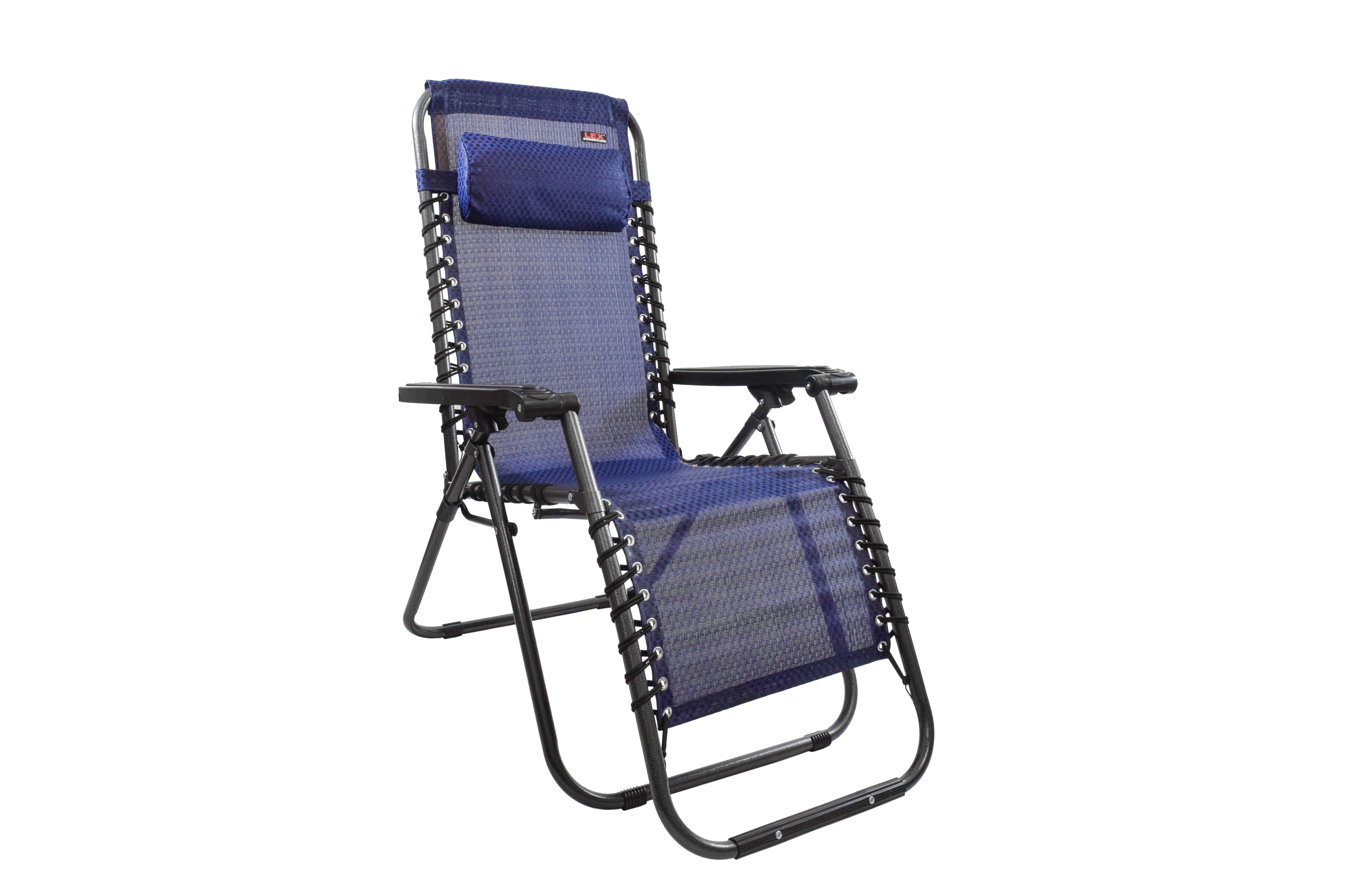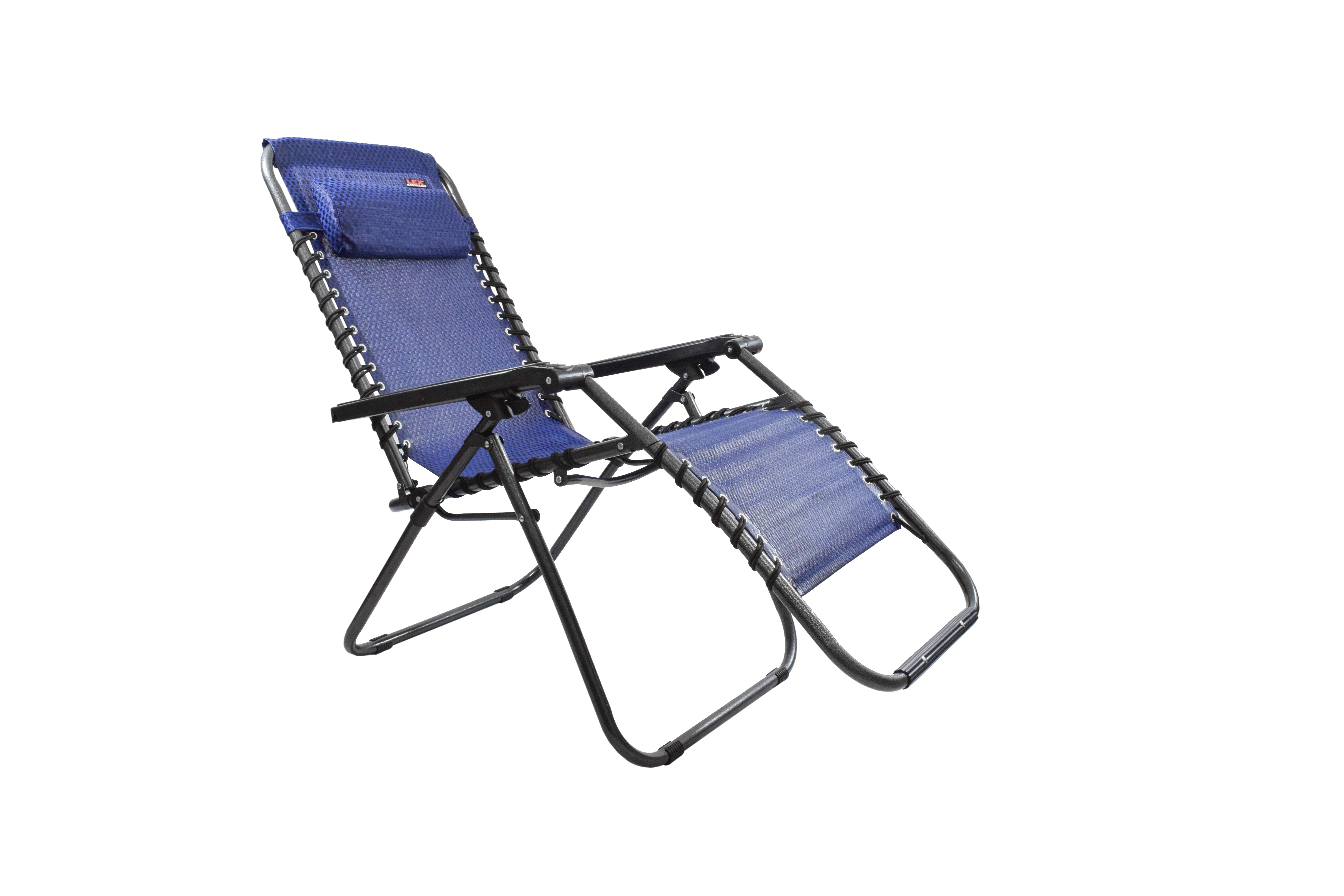 Vrtna podesiva stolica s čvrstim metalnim okvirom obloženim prahom, u modernom dizajnu, namijenjena za vrtove, terase, balkone ili plaže.