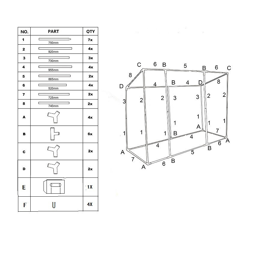Konstrukcija plastenika izrađena je od čvrstih metalnih cijevi. Jednostavan sustav za umetanje i vrlo lako i brzo otvaranje pomoću patentnog zatvarača.
