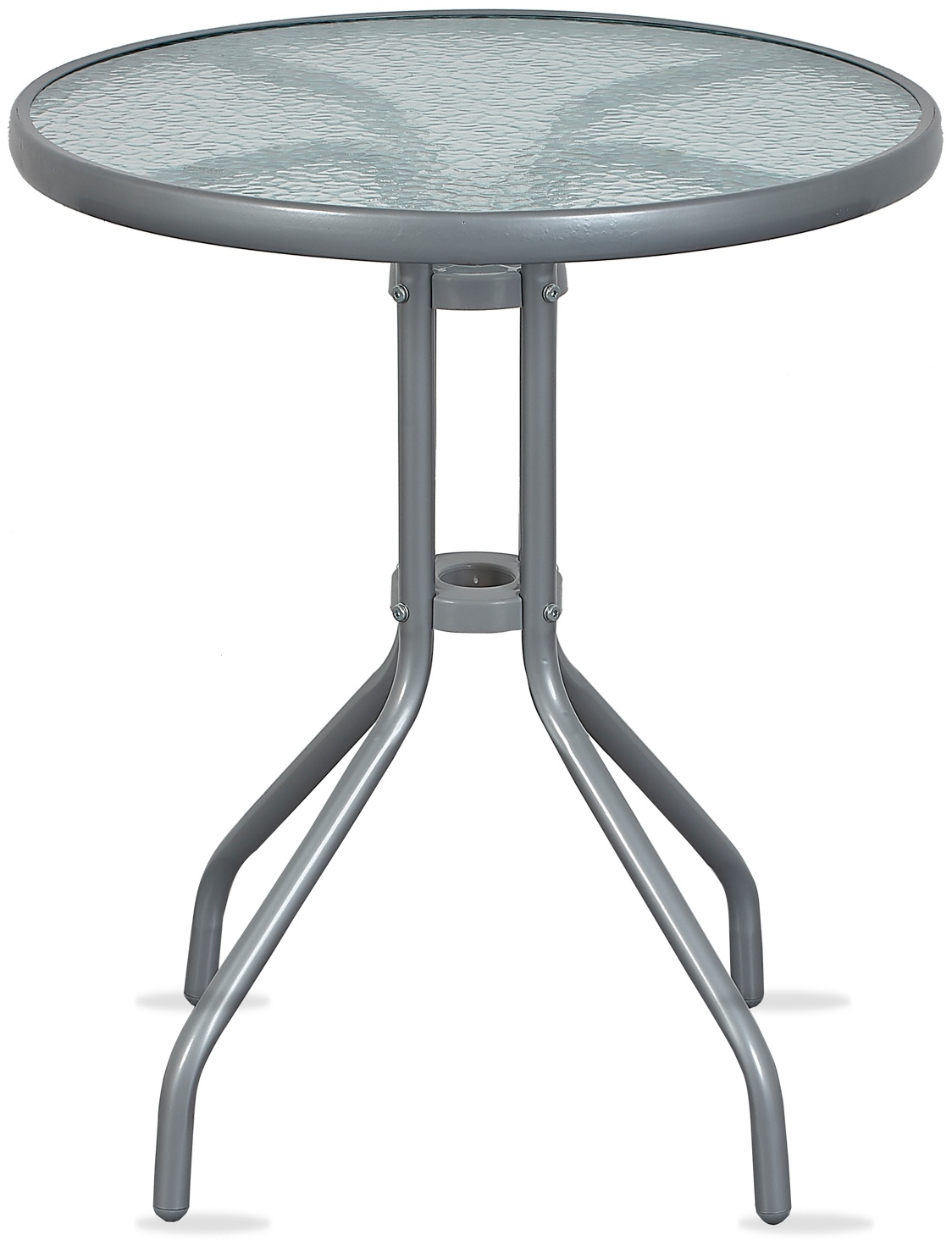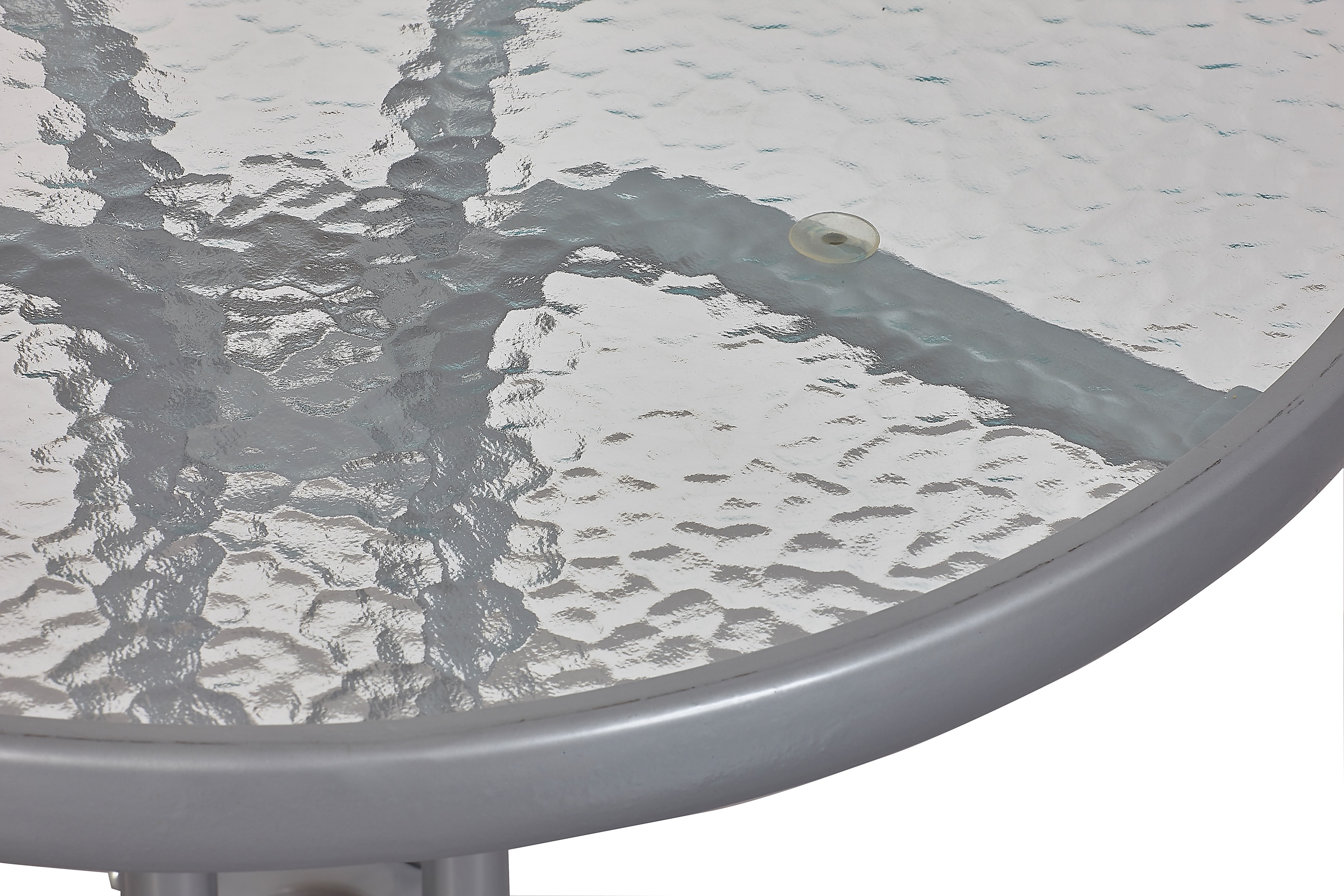 Vrtni stol s čvrstim metalnim okvirom i rebrastom staklenom pločom u modernom dizajnu, pogodan za vrtove, terase, kafiće, sjenice, balkone ili plaže.