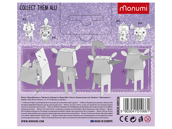 MONUMI je poljska marka stvorena od strane tima ljudi za koje je rad strast, a dječja radost glavna nagrada za kreativno stvaranje igračaka koje zabavljaju i poučavaju. Pažljiv odabir skupine stručnjaka koji razvijaju materijale, kako s sadržajnog, tako i s umjetničkog aspekta, usmjeren je na to da naši proizvodi učinkovito utječu na mentalni razvoj djece. MONUMI stvara jedinstvene papirnate kreativne setove i bojanke za različite skupine čitatelja uzimajući u obzir njihove estetske i intelektualne potrebe.