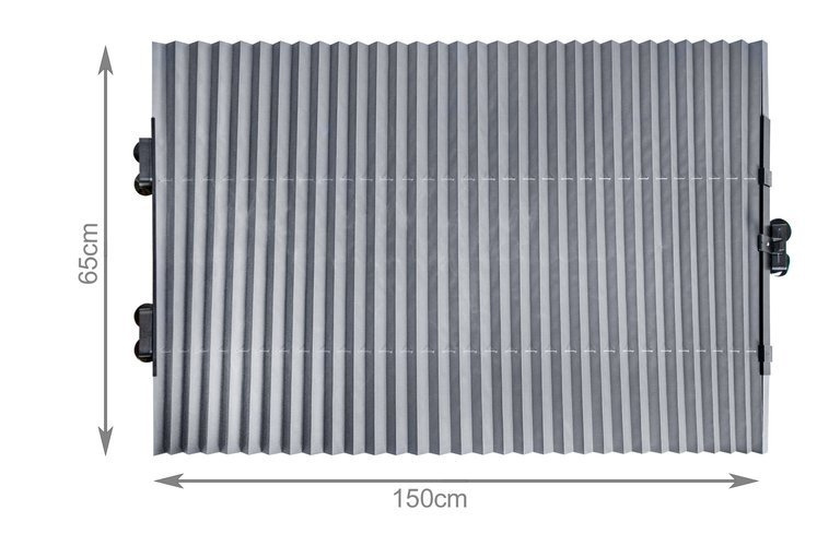 SPECIFIKACIJE - boja: crna, siva; materijal: aluminijska folija; PE folija, taft; Univerzalna veličina; dimenzije (dužina / širina): 150/65 cm; težina: 400 g; težina u pakiranju: 434 g