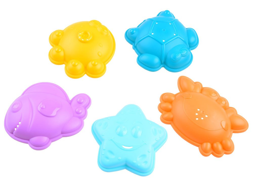 Predstavljamo set koji je prikladan kako za igru u pješčaniku, tako i za kupanje. Igračka je izrađena od mekog, elastičnog silikona i potpuno je sigurna za najmlađu djecu. Set ima mnogo elemenata, tako da igranje s njom brzo ne dosadi. Zanimljive boje i oblici zasigurno će privući pažnju svakog mališana.