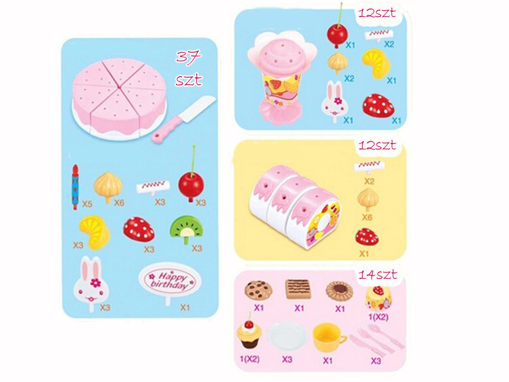 Neizostavni dio svake uspješne rođendanske proslave je torta.Predstavljamo set s kojim će svaka mala domaćica moći organizirati nezaboravnu zabavu. Dio seta je torta koja se može različito ukrašavati, rezati i posluživati gostima. Dio je i dodatni osvježenje, npr.. kolačići, keksi itd.