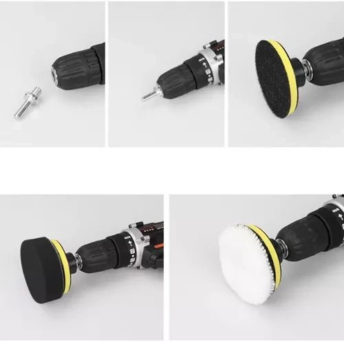 Prilagođen za rad u amaterskim i profesionalnim uvjetima, izuzetno je koristan u lakirnici i u kućnoj radionici.Prilagođeni su za poliranje različitih lakiranih površina pomoću bušilice / odvijača. Korištenje spužve različite tvrdoće i čvrstog montažnog adaptera osigurava dugotrajno i bezproblematčno korištenje seta.Četke za čišćenje su od pjene, tako da ih lako možete oprati i ponovno koristiti.
