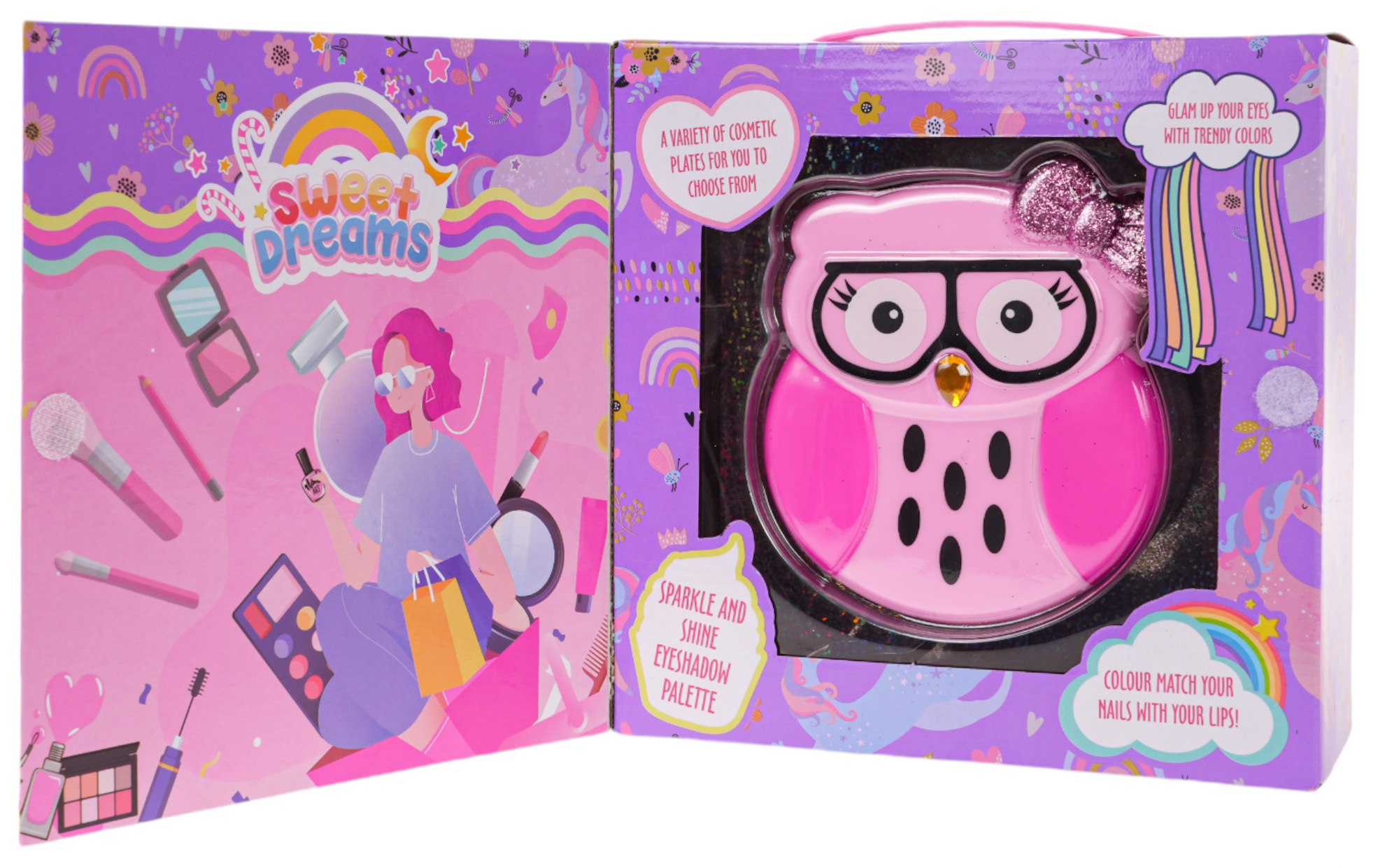Sva kozmetika je pohranjena u šarmantnoj sklopivoj kutiji ukrašenoj grafikom sove, koja još više oduševljava i inspirira za igru.Široka ponuda dodataka nudi niz opcija prilagođenih potrebama svake mlade dame.