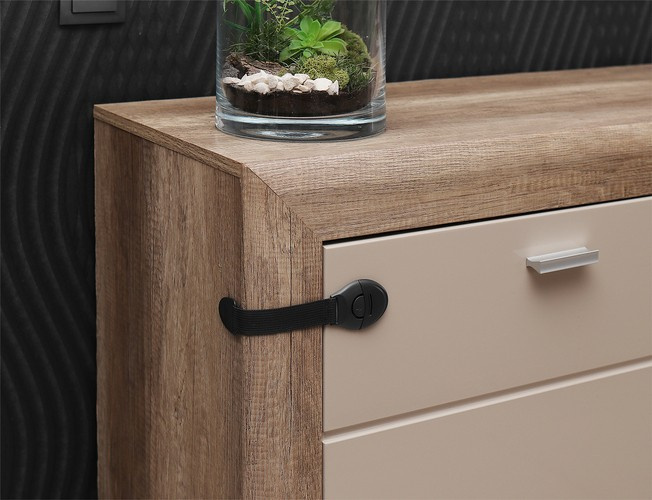 Samo pritisnite zaštitu na pravom mjestu i kopča će se otvoriti. Nakon vađenja potrebnog pribora iz ormarića / ladice, dovoljno je zatvoriti bravu ladice i ona ponovno ispunjava svoju funkciju. Zaštita ormarića je vrlo estetska - montirana na svijetli namještaj ne privlači pažnju.Locker lock ne samo da štiti male prste od slučajnog stiskanja. To je također savršen način za zaštitu od otvaranja bilo kojeg namještaja s predmetima opasnim za dijete - npr. ladice s noževima. Zaštita ormara Dobro će poslužiti i životinjama koje vole otvarati namještaj kada vlasnik nije prisutan i "pospremati" svoju odjeću. Kopča se bez pravilnog pritiska neće otvoriti, tako da sadržaj ormarića / ladice ostaje siguran.