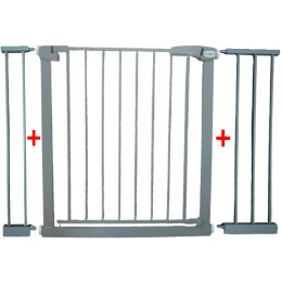 Sigurnosna ograda postavljena je na mjestima gdje ne želimo da dijete ulazi/izlazi, kao što su stepenice, hodnici, vrata, izlazi. Postavljena vrata predstavljaju učinkovitu prepreku za dijete i time štite njegovo zdravlje i život. Sigurnosna vrata su montirana pomoću pritiska u montažnom otvoru. Montaža se odvija bez potrebe za bušenjem u zid, što znači da ne dolazi do oštećenja zida ili vrata. Montaža se sastoji od uvrtanja vijaka u 4 kuta vrata. Vijci su osigurani silikonskim kapicama, zahvaljujući kojima zid i vrata nisu oštećeni, a vrata se učinkovito i stabilno drže u otvoru. Vrata su opremljena blokirajućim mehanizmom. Da biste otvorili vrata, potrebno je pritisnuti gumb na gornjoj bravi i zatim lagano podići vrata. Bez laganog podizanja vrata, kapija se neće otvoriti - to sprječava slučajno otvaranje kapije od strane djeteta ili starijeg djeteta. Zahvaljujući mogućnosti proširenja i sustavu montaže, vrata se mogu prilagoditi prolazima dimenzija od 79 cm do 115 cm. Proširenje možeš montirati na bilo koju stranu. Možete montirati jedno proširenje ili ne montirati nijedno.