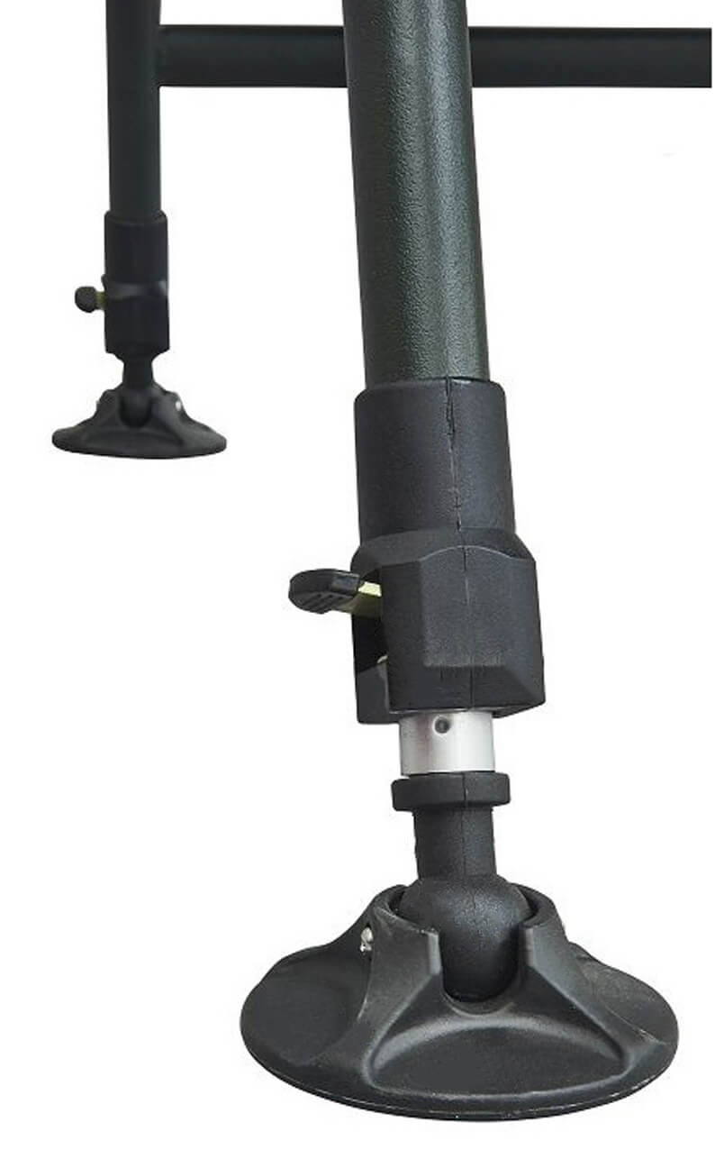 Podesivi nogari sa širokim stopama protiv propadanja osiguravaju udobno postavljanje na neravnom terenu.
