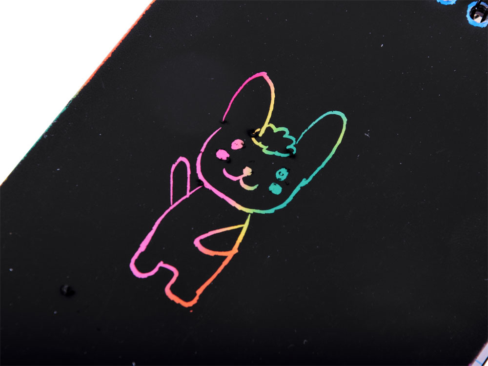 Šareni strugalni blok u duginim bojama u praktičnoj bilježnici A6 s 10 stranica osigurat će svakom djetetu kreativnu zabavu. Bilježnica s crnim stranicama skriva čarobnu pozadinu, dovoljno je koristiti štapić, stylus, izgrebati uzorak, crtež i stvoriti očaravajuću sliku. Dječja kreativnost ne poznaje granice, stoga će igranje s čarobnim bilježnicom zasigurno biti zabavno!