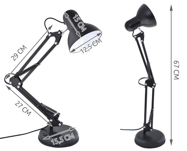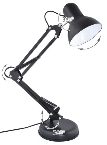 Klasična lampa za crtanje pruža mnoge mogućnosti podešavanja kuta svjetla. Sjenilo je rotirajuće za 360 stupnjeva, visina je podesiva zahvaljujući rukama s oprugama. Ruka se može okretati za 360 stupnjeva, što vam omogućuje da savršeno prilagodite svjetiljku svojim potrebama. Odlično će odgovarati za rad za stolom, domaće zadaće, uradi sam projekte, lijepljenje modela ili crtanje. Metalni okvir, teška baza za stabilnost.