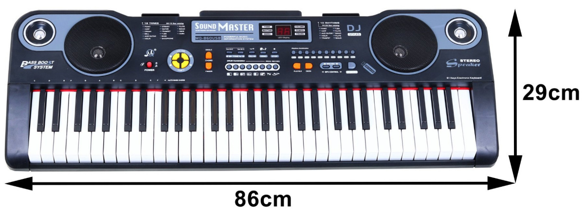 - glazbena tipkovnica (36 bijelih tipki + 25 crnih tipki),