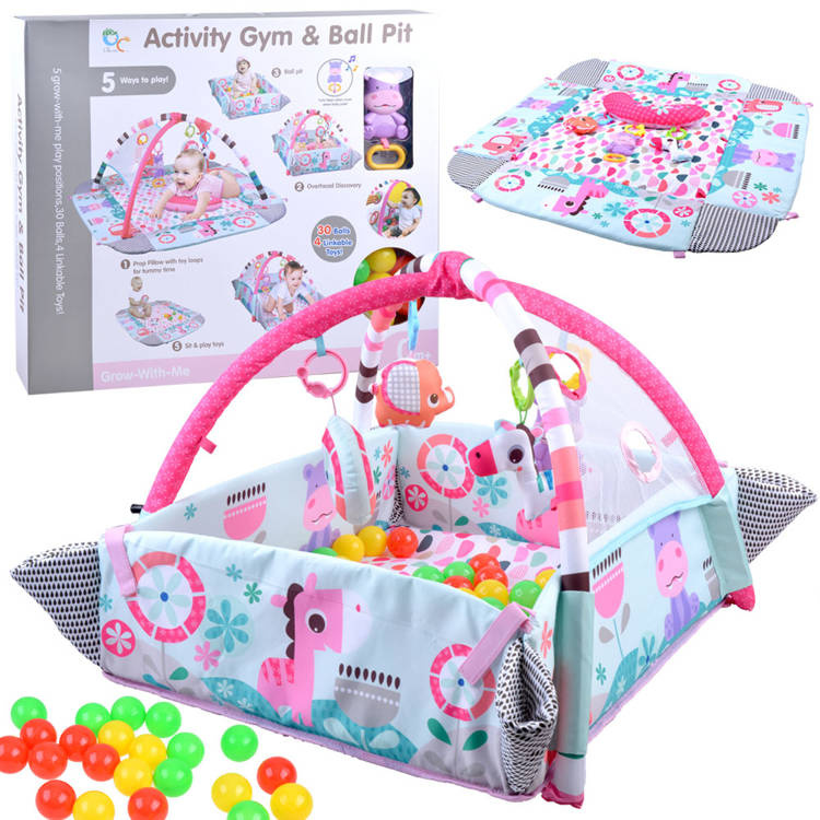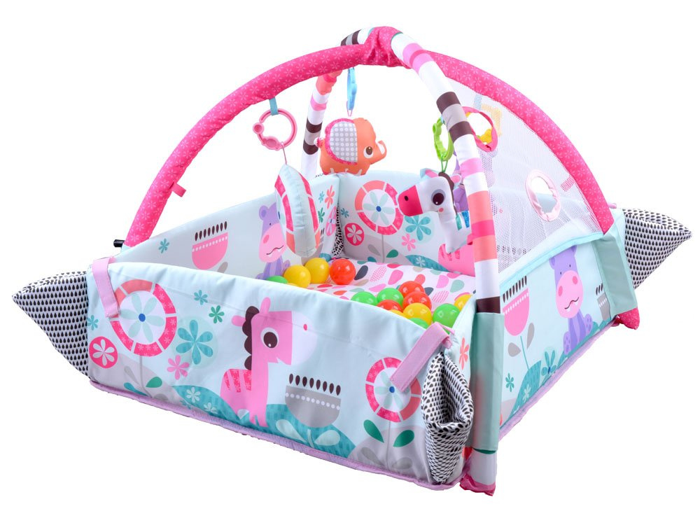 Zatvorena podloga ili ogradica jednostavno podiže zidove podloge (pričvršćeni su čičak trakom) i tako stvara prostor za igru za sjedeće ili puzajuće dijete. Zahvaljujući priloženim lopticama, igranje će biti još zabavnije.