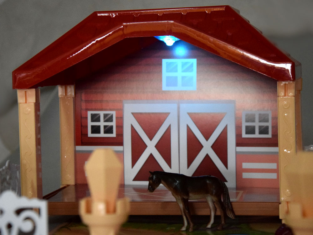 - veća štala ima dimenzije približno. 27 cm x 22 cm x 16 cm,