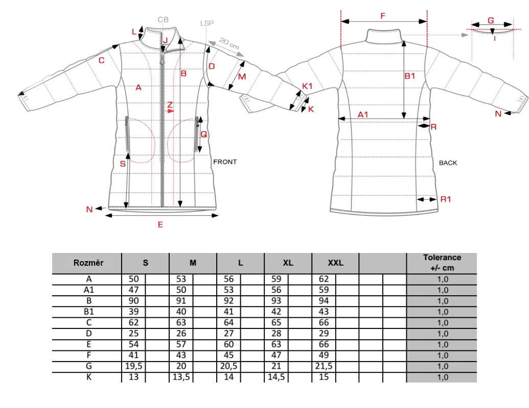 - Kroj: Prošivena, povišeni ovratnik, patentni zatvarač po cijeloj dužini